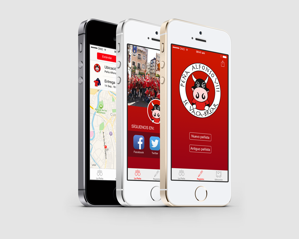 Logo, equipación y aplicación para la Peña Alfonso VIII se vaca-brear formada para celebrar las fiestas de San Mateo en Cuenca, España.